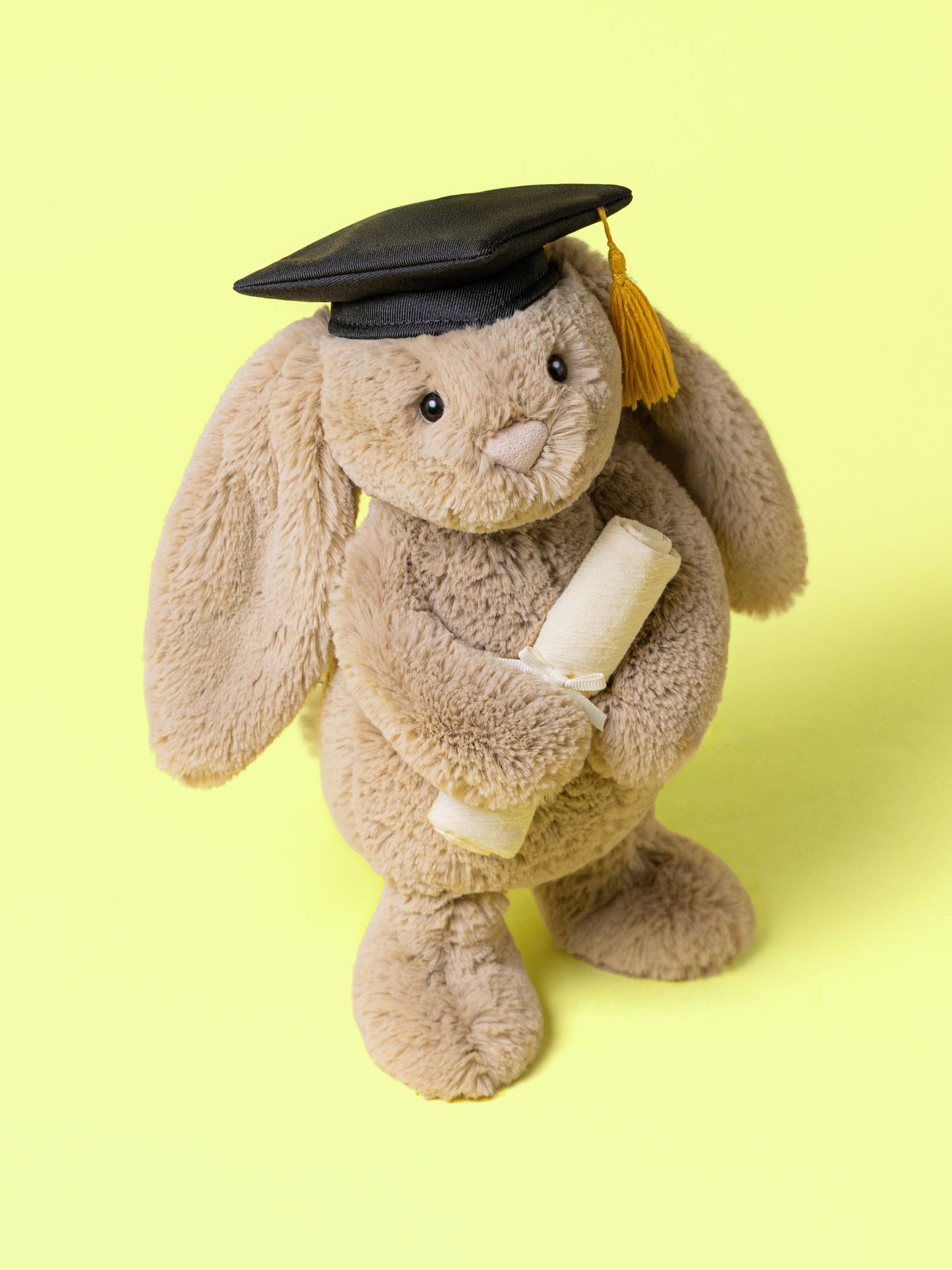 Bashful Bunny’s graduated! Bartholomew Bear was thrilled to be her plus-one – any excuse to dress up and photobomb the official shots of Bashful in her mortar board sounds grand to him!