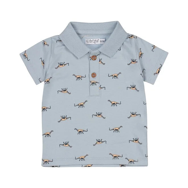 Make every day extra fun with this Dirkje polo shirt in light blue! Featuring an all-over dino print, this cute polo for boys has short sleeves and a stylish collar with buttons at the neckline. Made from a soft cotton with stretch, this polo offers both comfort and a playful look. Perfect for your little one to get through the day both stylishly and comfortably!