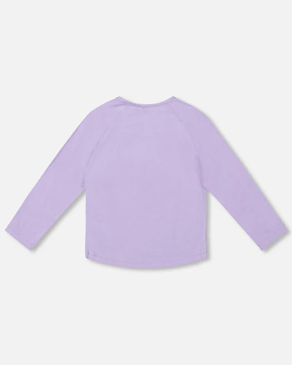 Our Organic Cotton Long Sleeve T-Shirt in Lavender With Sequin Unicorn brings a playful shimmer to everyday wear. This long raglan sleeve tee in stretch jersey is adorned with a sequin unicorn framed by a sequin heart for a magical, textured finish, and has a round neckline.