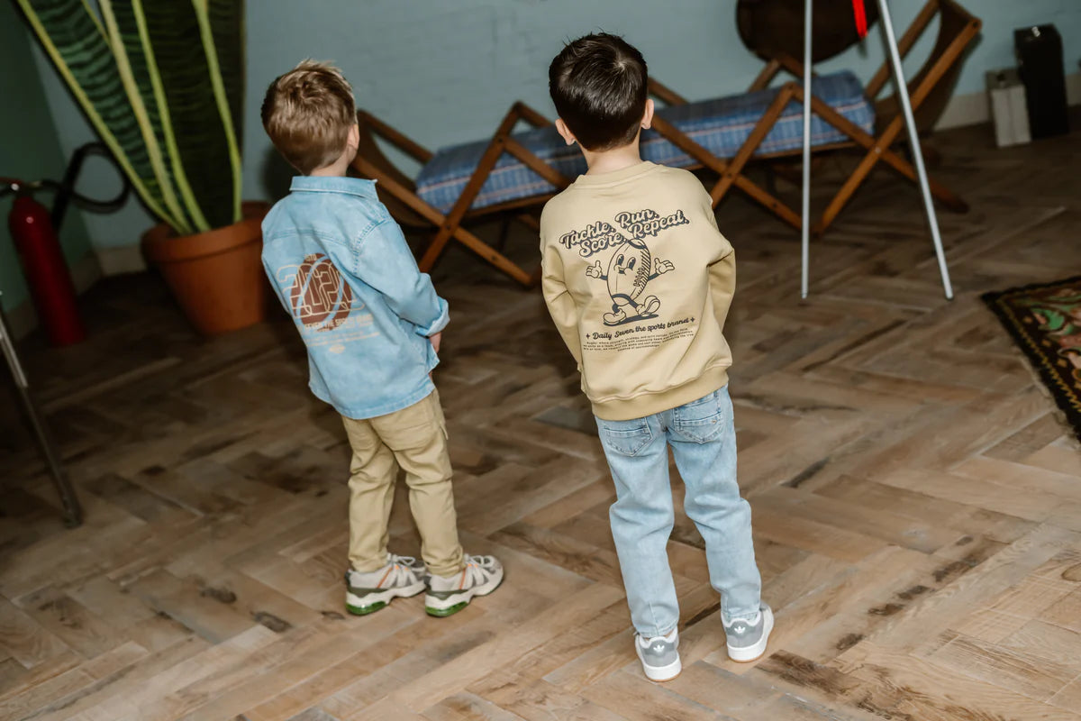 omfy sweatshirt with an oversized fit from Daily7Kids. The sweatshirt has a cool print on the chest, and a large retro print with embroidery on the back. The relaxed fit ensures good comfort.